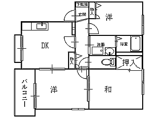 | 詳細間取 | 3DK (洋6帖×1、洋4.5帖×1、和6帖×1、DK6帖) | ||